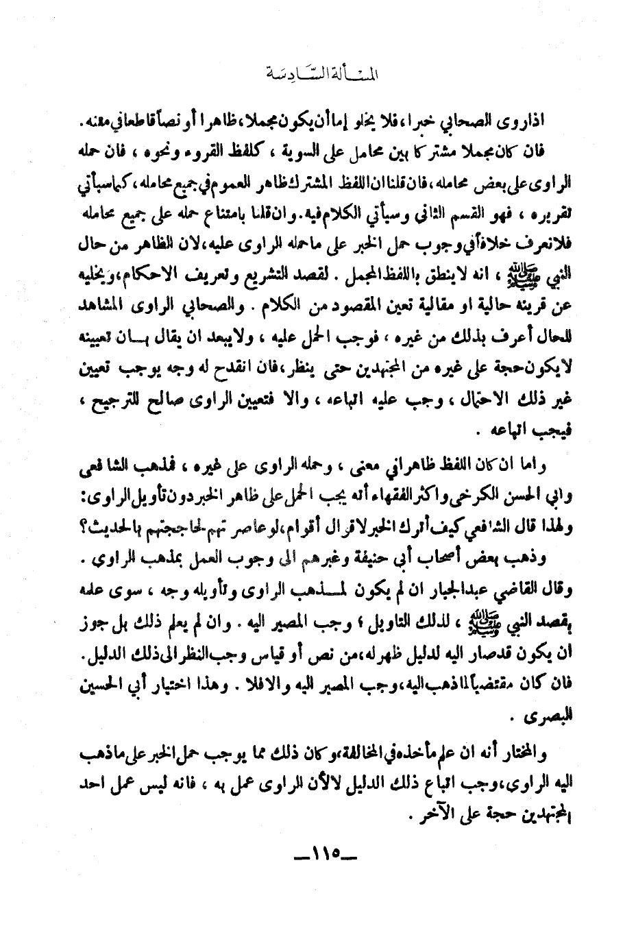 [الْمَسْأَلَةُ السَّادِسَةُ إِذَا رَوَى الصَّحَابِيُّ خَبَرًا فَلَا يَخْلُو إِمَّا أَنْ يَكُونَ مُجْمِلًا أَوْ ظَاهِرًا أَوْ قَاطِعًا فِي مَتْنِهِ]