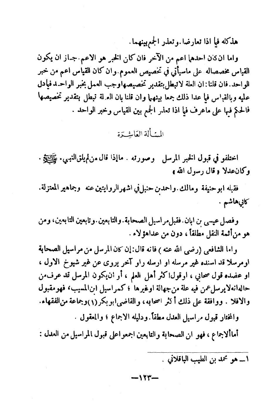 (١) هُوَ مُحَمَّدُ بْنُ الطَّيِّبِ الْبَاقِلَّانِيُّ