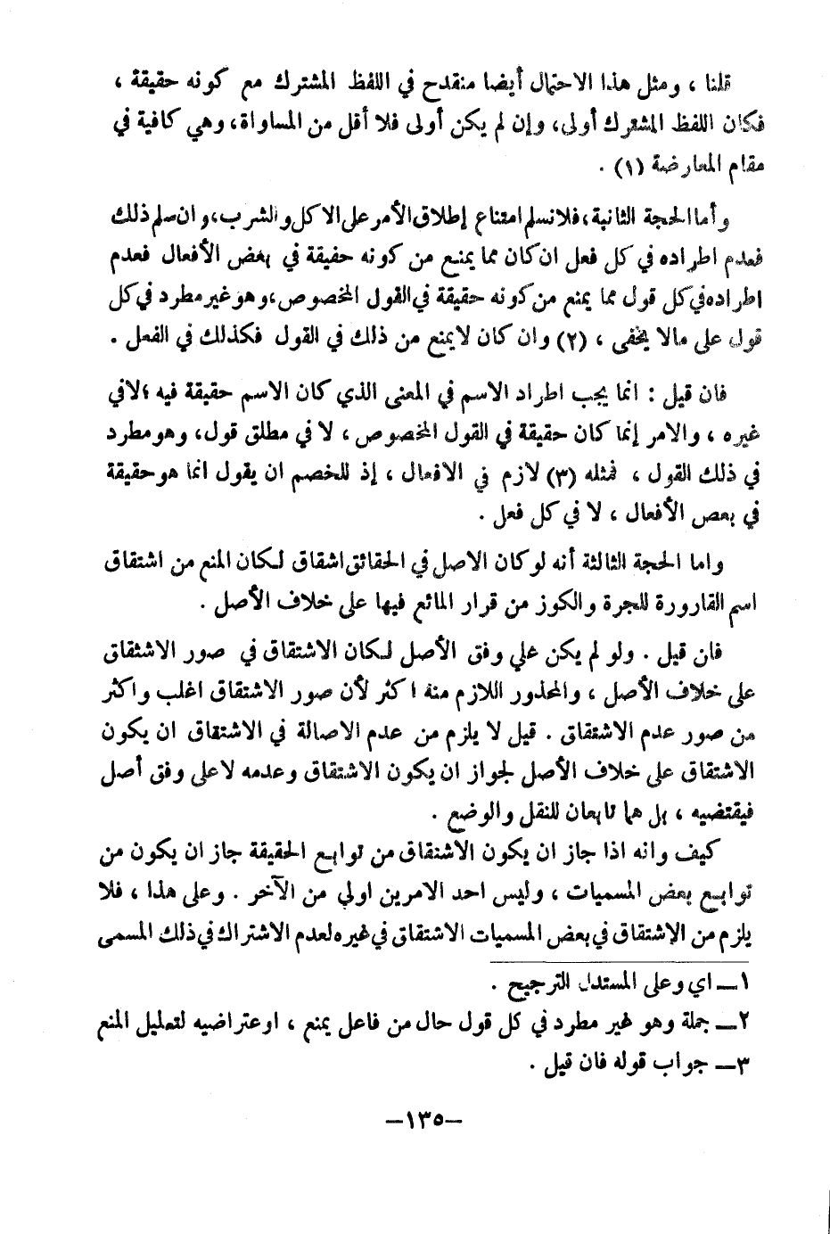 قُلْنَا: وَمِثْلُ هَذَا أَيْضًا مُنْقَدِحٌ فِي اللَّفْظِ الْمُشْتَرَكِ مَعَ كَوْنِهِ حَقِيقَةً، فَكَانَ اللَّفْظُ الْمُشْتَرَكُ أَوْلَى، وَإِنْ لَمْ يَكُنْ أَوْلَى فَلَا أَقَلَّ مِنَ الْمُسَاوَاةِ، وَهِيَ كَافِيَةٌ فِي مَقَامِ الْمُعَارَضَةِ (١) .