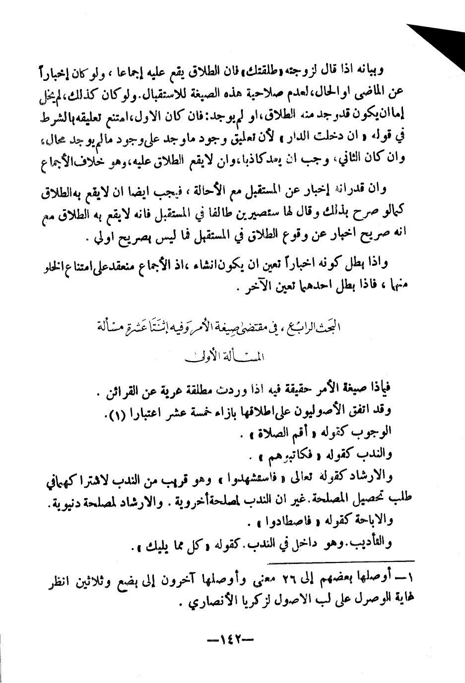 الْبَحْثُ الرَّابِعُ، فِي مُقْتَضَى صِيغَةِ الْأَمْرِ وَفِيهِ اثْنَتَا عَشْرَةَ مَسْأَلَةً.