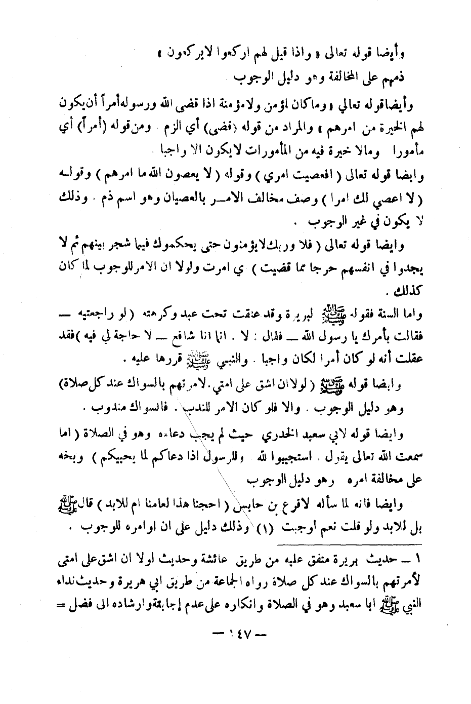 وَذَلِكَ دَلِيلٌ عَلَى أَنَّ أَوَامِرَهُ لِلْوُجُوبِ.