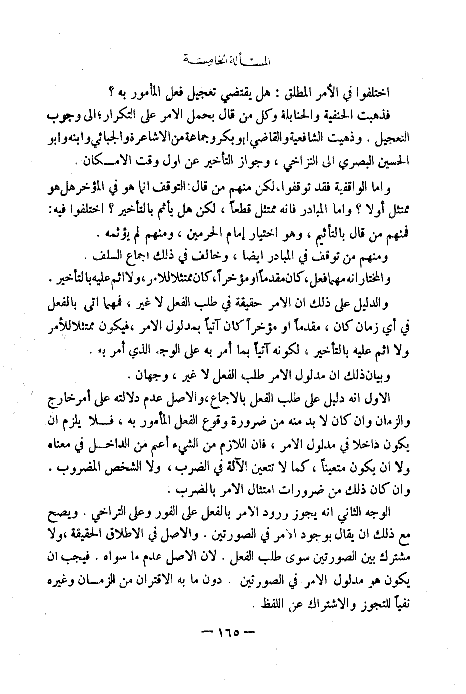 [الْمَسْأَلَةُ الْخَامِسَةُ الْأَمْرِ الْمُطْلَقِ هَلْ يَقْتَضِي تَعْجِيلَ فِعْلِ الْمَأْمُورِ بِهِ]