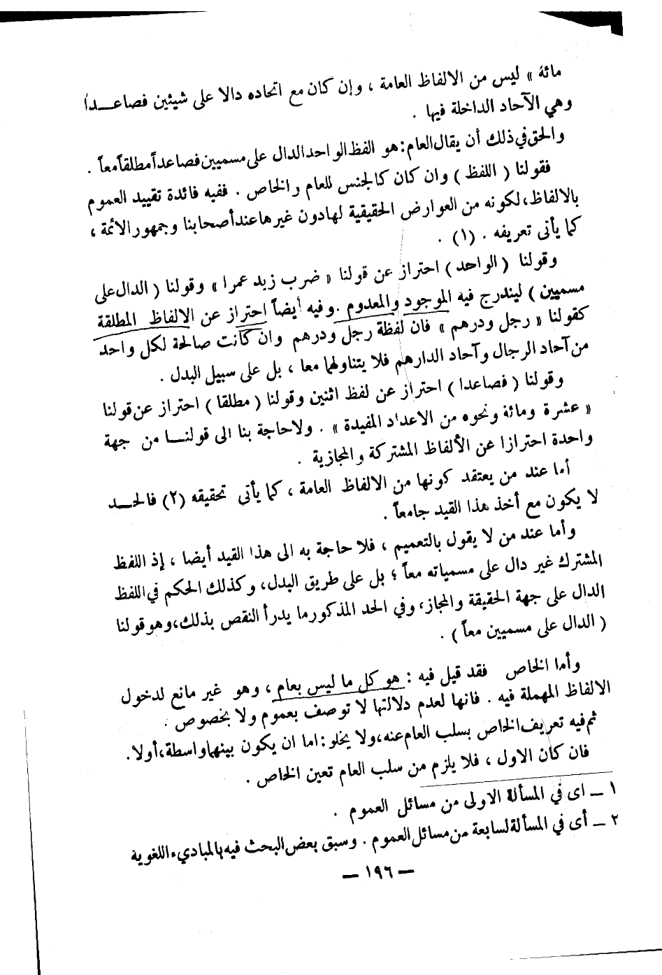 (٢) أَيْ فِي الْمَسْأَلَةِ السَّابِعَةِ مِنْ مَسَائِلِ الْعُمُومِ، وَسَبَقَ بَعْضُ الْبَحْثِ فِيهِ بِالْمَبَادِئِ اللُّغَوِيَّةِ