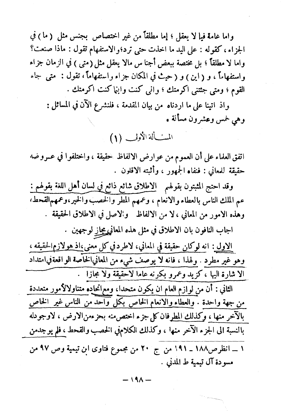 (١) انْظُرْ ص ١٨٨ - ١٩١ مِنْ ج ٢٠ مِنْ مَجْمُوعِ فَتَاوَى ابْنِ تَيْمِيَةَ وَص ٩٧ مِنْ مُسَوَّدَةِ آلِ تَيْمِيَةَ ط الْمَدَنِيِّ