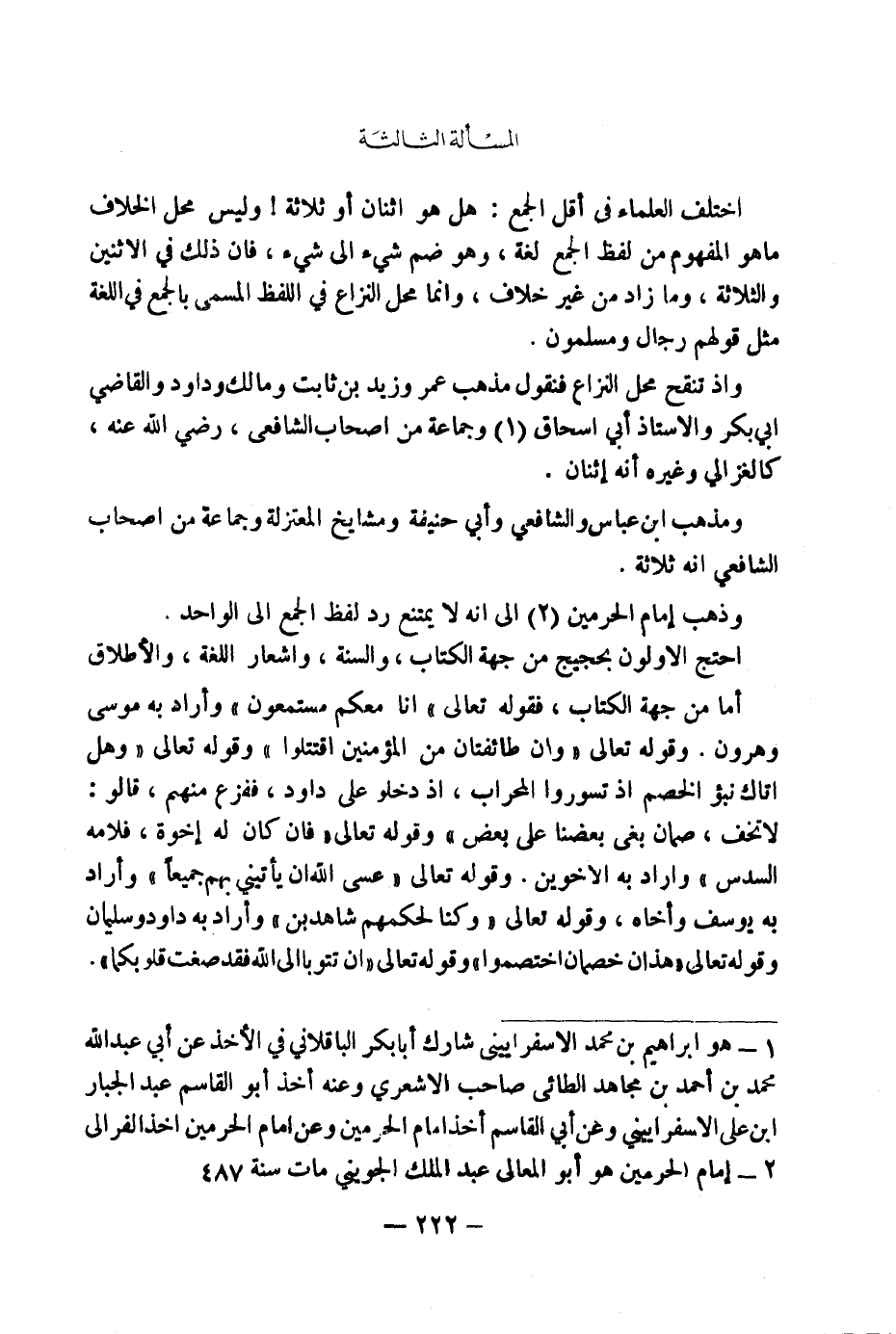 (٢) إِمَامُ الْحَرَمَيْنِ هُوَ أَبُو الْمَعَالِي عَبْدُ الْمَلِكِ الْجُوَيْنِيُّ مَاتَ سَنَةَ ٤٨٧