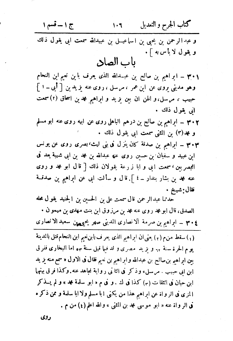 301- إِبراهيم بن صالح بن عَبد الله، الذي يعرف بابن نُعَيم بن النحام، وهو مَديني.