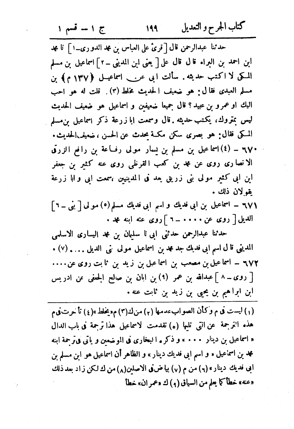 حَدثنا عَبد الرَّحمن، قال: قرئ على العباس بن محمد الدُّوري، حَدثنا مُحمد بن أَحمد بن البراء قال: قال علي، يَعني ابن المَدينيّ: إسماعيل بن مسلم المكي لا أكتب حديثه.