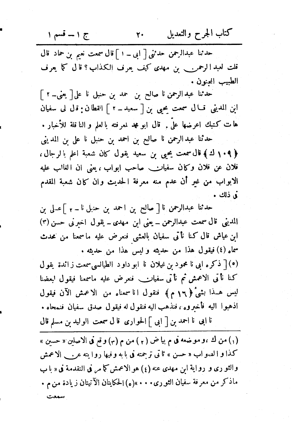 حَدثنا عَبد الرَّحمن، حَدثنا صالح بن أحمد بن حَنبل، حَدثنا علي، يَعني ابن المَديني، قال: سَمِعتُ يَحيَى بن سَعيد القطان: قال لي سُفيان هات كتبك أعرضها علي.