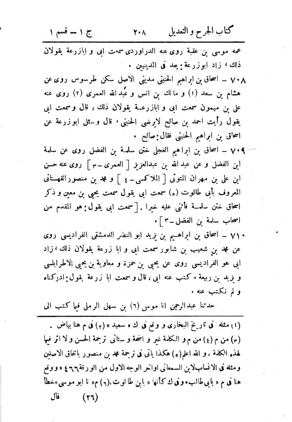 708- إِسحاق بن إِبراهيم الحنيني مَديني، الأَصل سكن طرسوس.