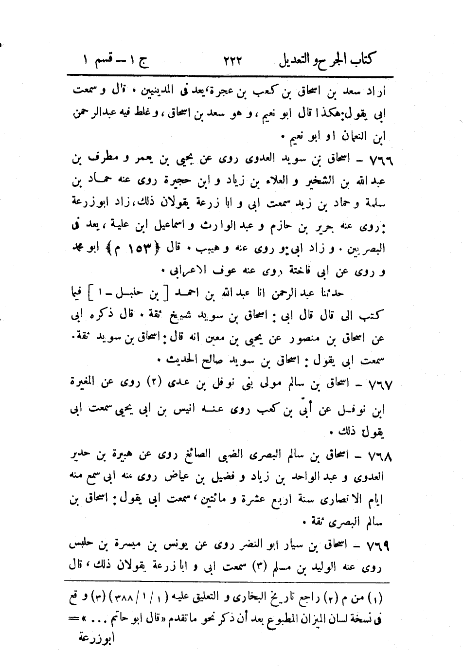 قال: ذكره أَبي، عن إِسحاق بن منصور، عَن يَحيي بن مَعين، أَنه قال: إِسحاق بن سُويد ثقة.
