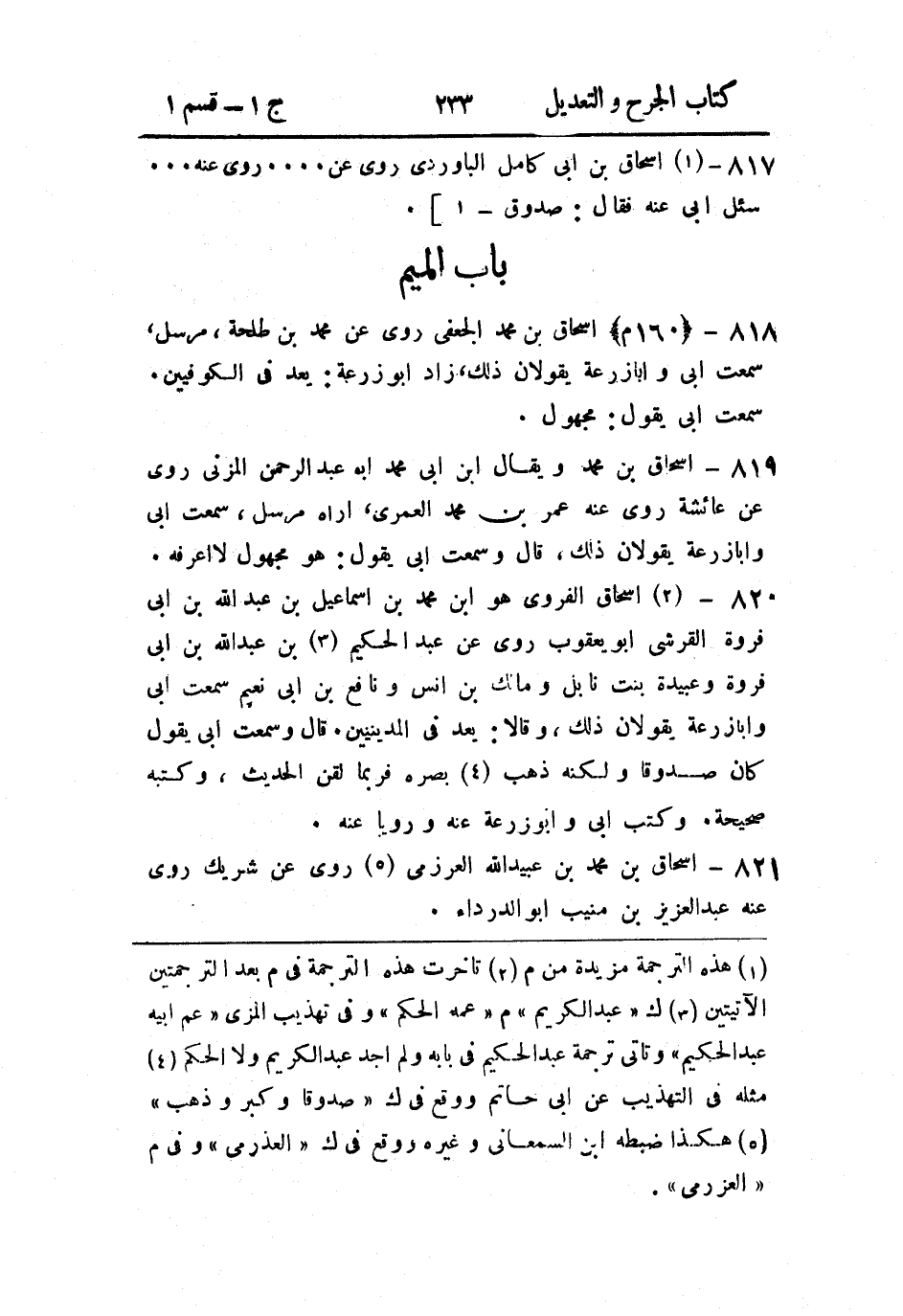 821- إِسحاق بن محمد بن عُبَيد الله العرزمي.