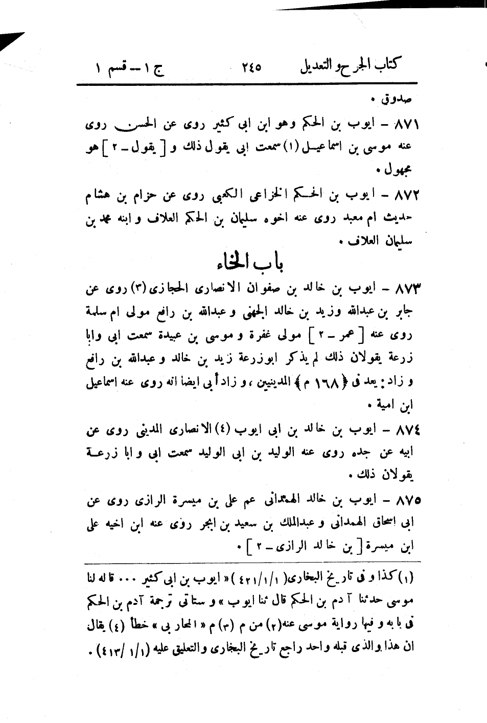 875- أَيوب بن خالد الهمداني، عم عَلي بن ميسرة الرازي.