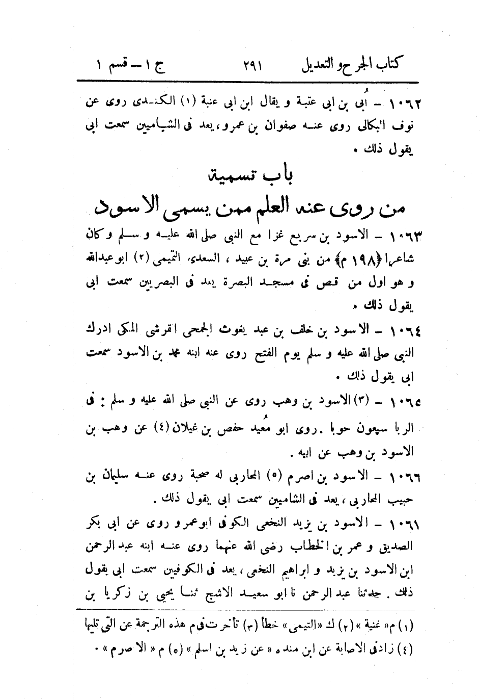 - باب تسمية من رُوي عَنه العلم، مِمَّن يُسَمَّى الأَسود.