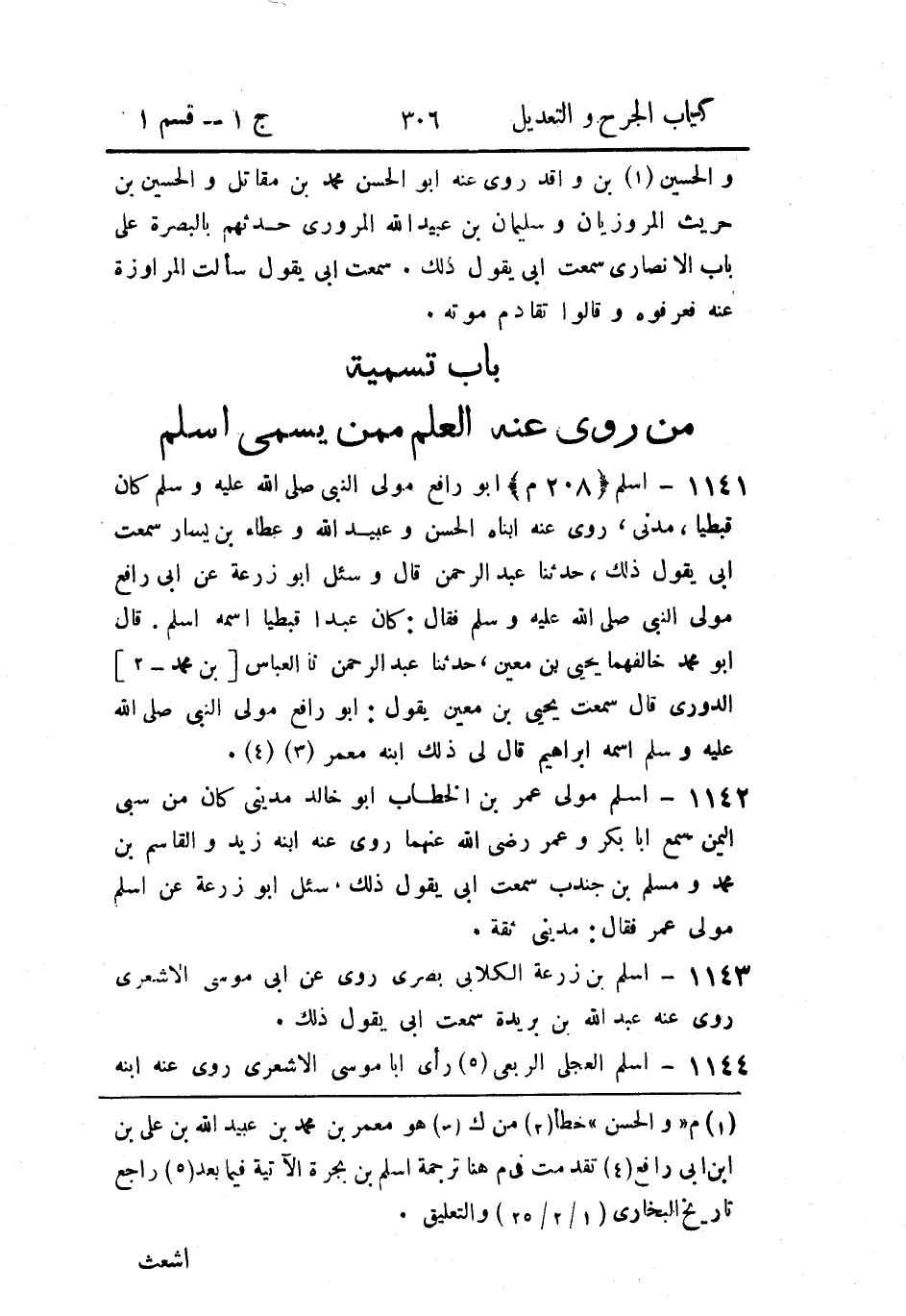 - باب تسمية من رُوي عنه العلم، مِمَّن يُسَمَّى أَسلم.