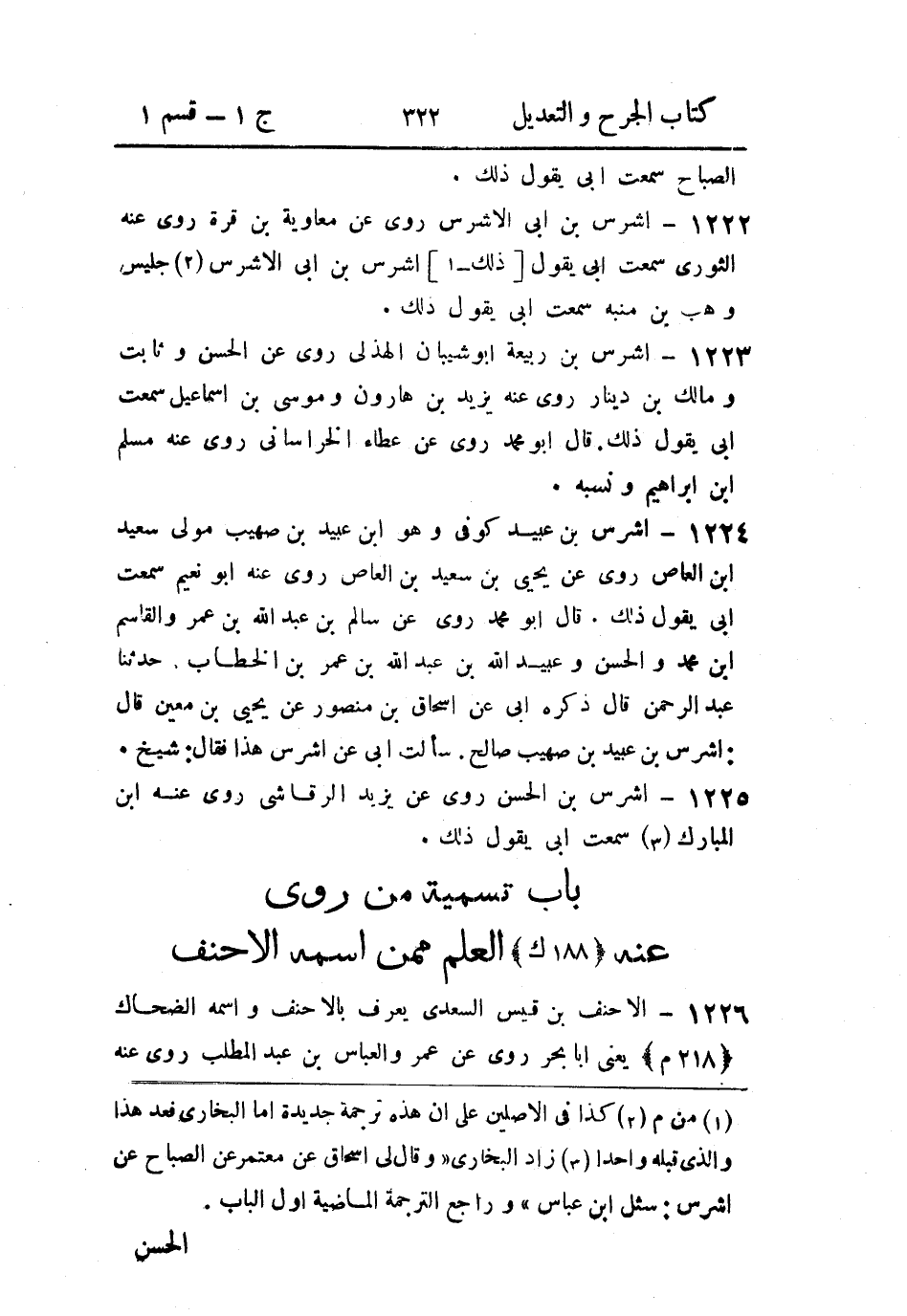 - باب تسمية من رُوي عَنه العلم، ممن اسمه الأَحنف.