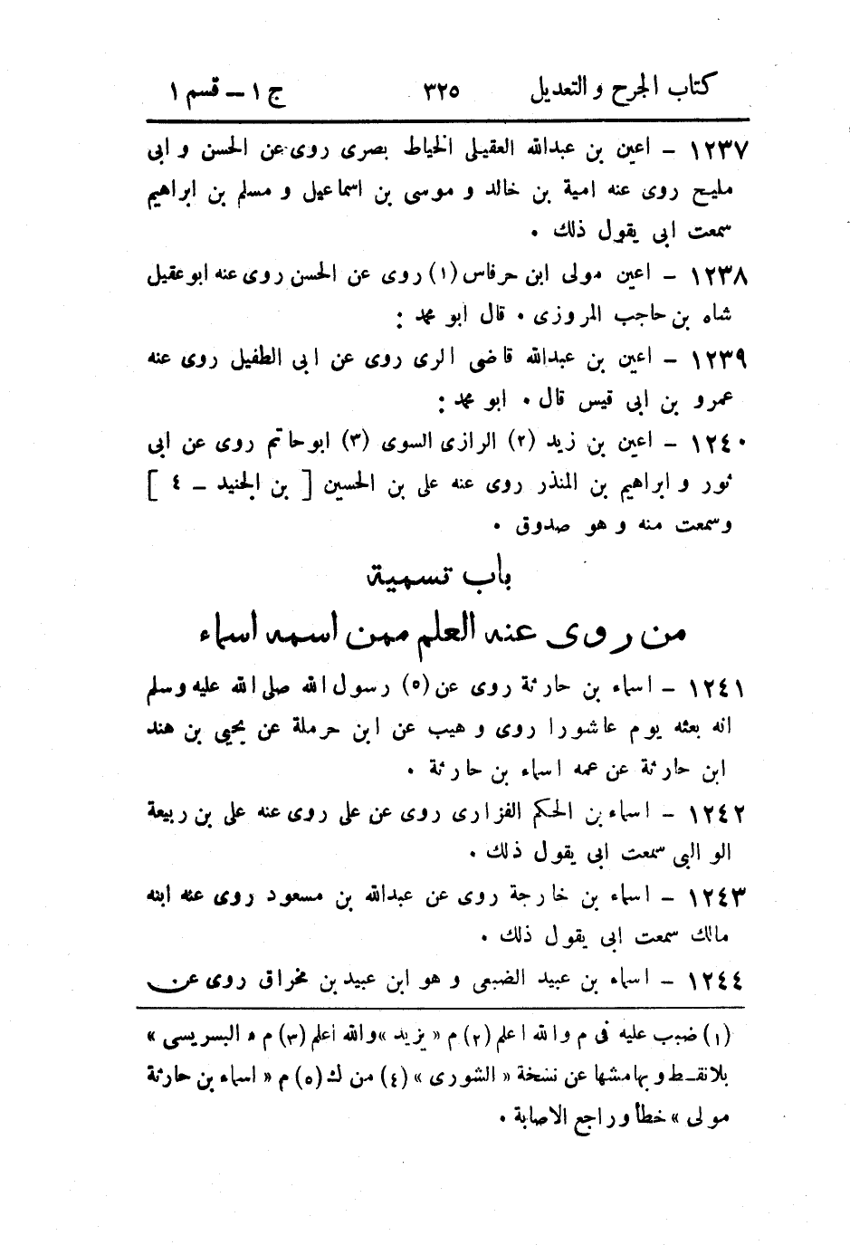 - باب تسمية من رُوي عنه العلم، ممن اسمه أسماء.