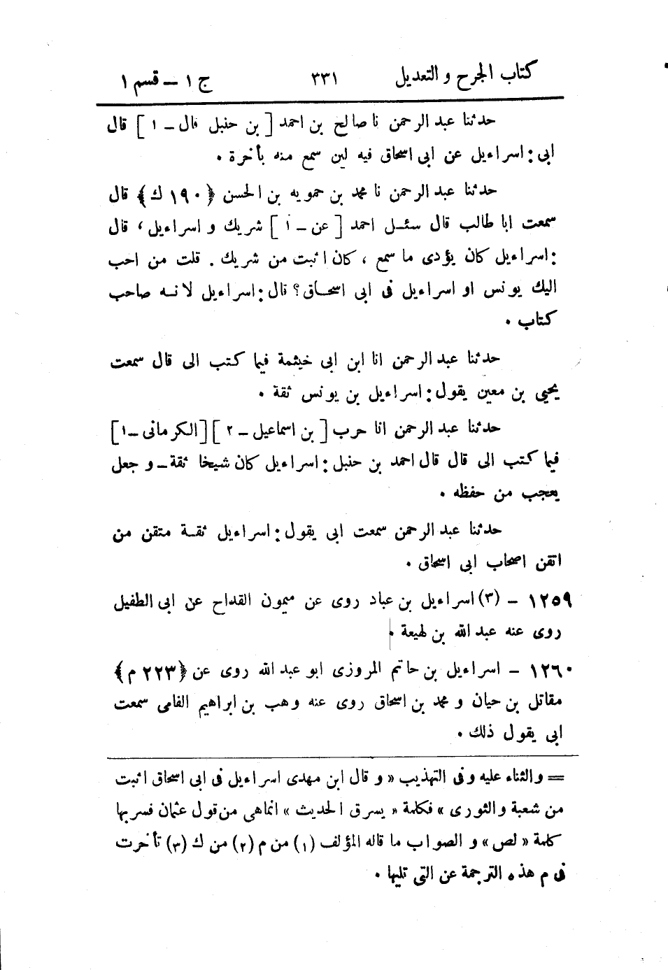 حَدثنا عَبد الرَّحمن، سَمِعتُ أَبي يقول: إِسرائيل ثقة متقن، من أتقن أَصحاب أبي إِسحاق.