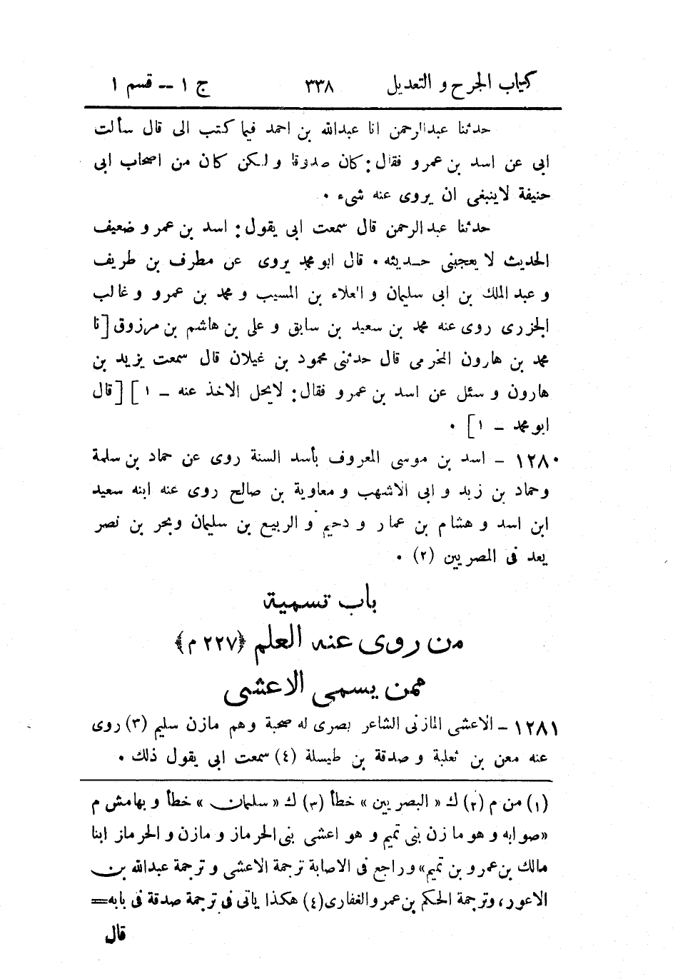 - باب تسمية من رُوي عنه العلم، ممن يسمى الأَعشى.