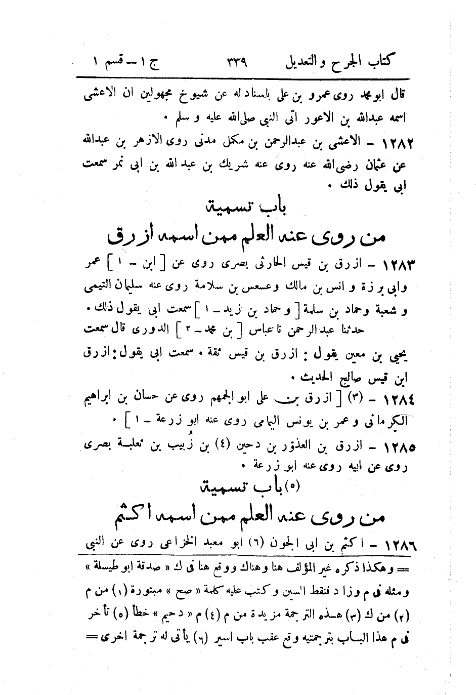 - باب تسمية من رُوي عنه العلم، ممن اسمه أزرق.