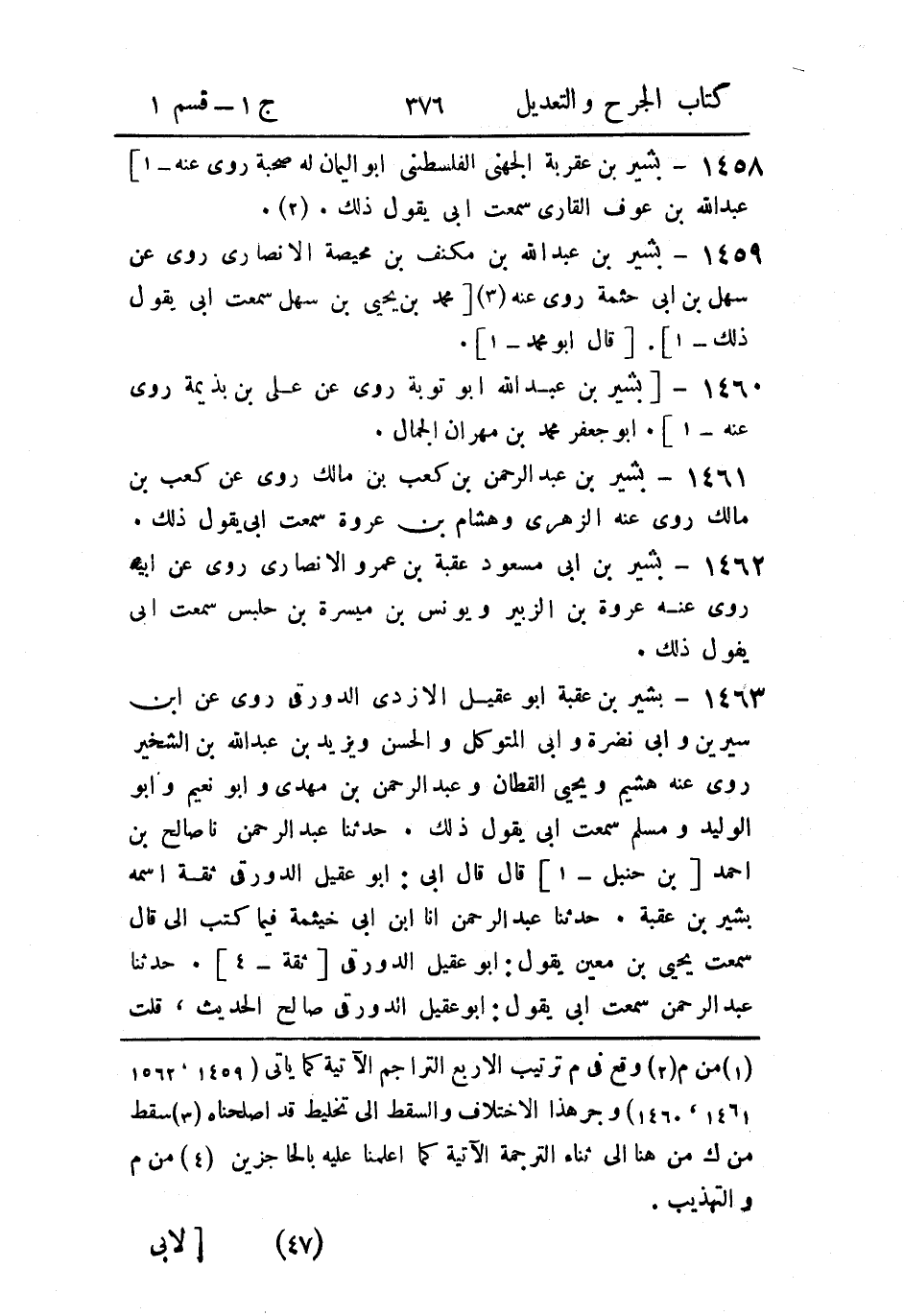 1461- بشير بن عَبد الرَّحمن بن كعب بن مالك.