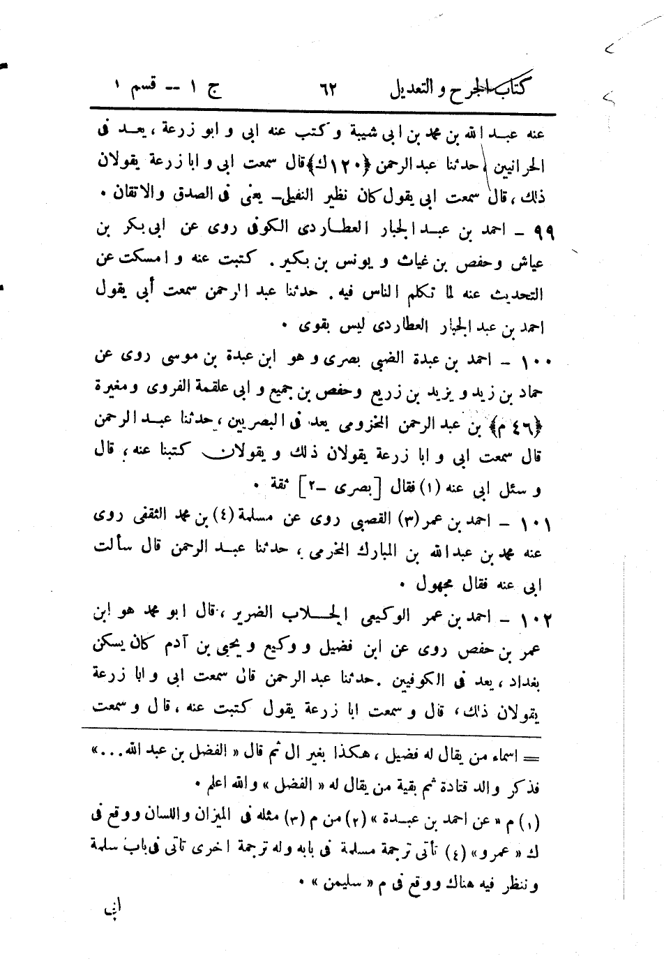 قال: وسمعت أَبا زُرعَة يقول: كتبت عنه، قال: وسمعتُ أَبي يقول: أدركته وَلم أكتُب عنه.