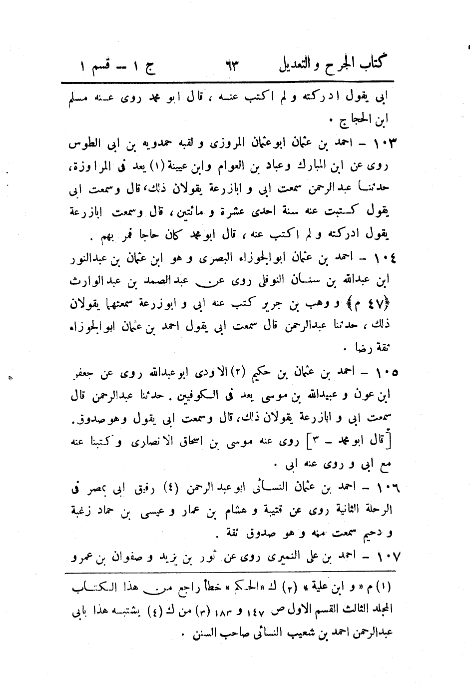 106- أَحمد بن عثمان النَّسائي أَبو عَبد الرَّحمن، رفيق أبي بمصر في الرحلة الثانية.