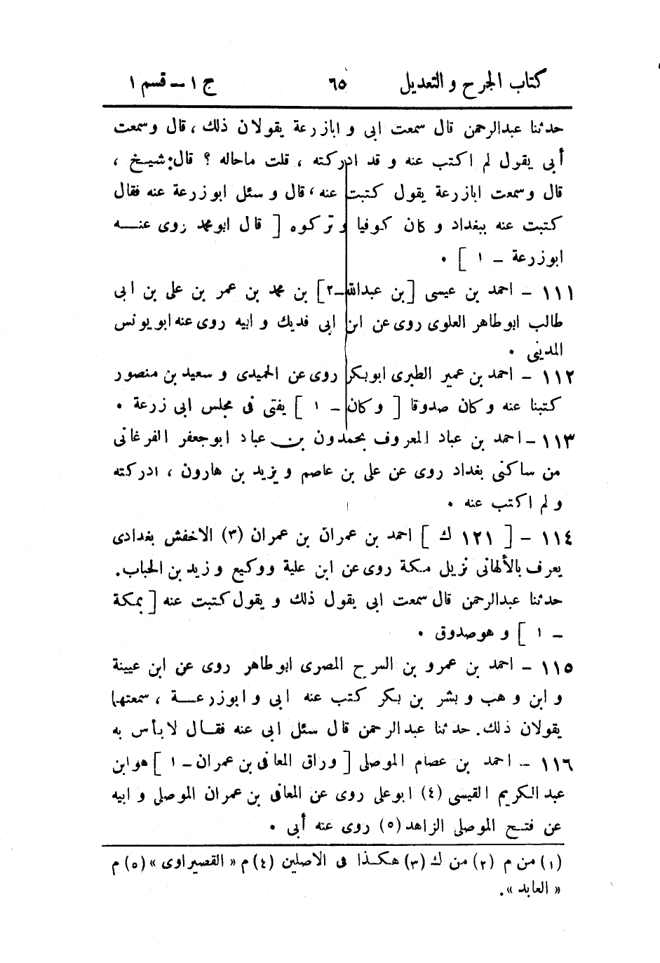 116- أَحمد بن عصام المَوْصِلي وراق المعافي بن عِمران، هو ابن عَبد الكريم القيسي، أَبو علي.