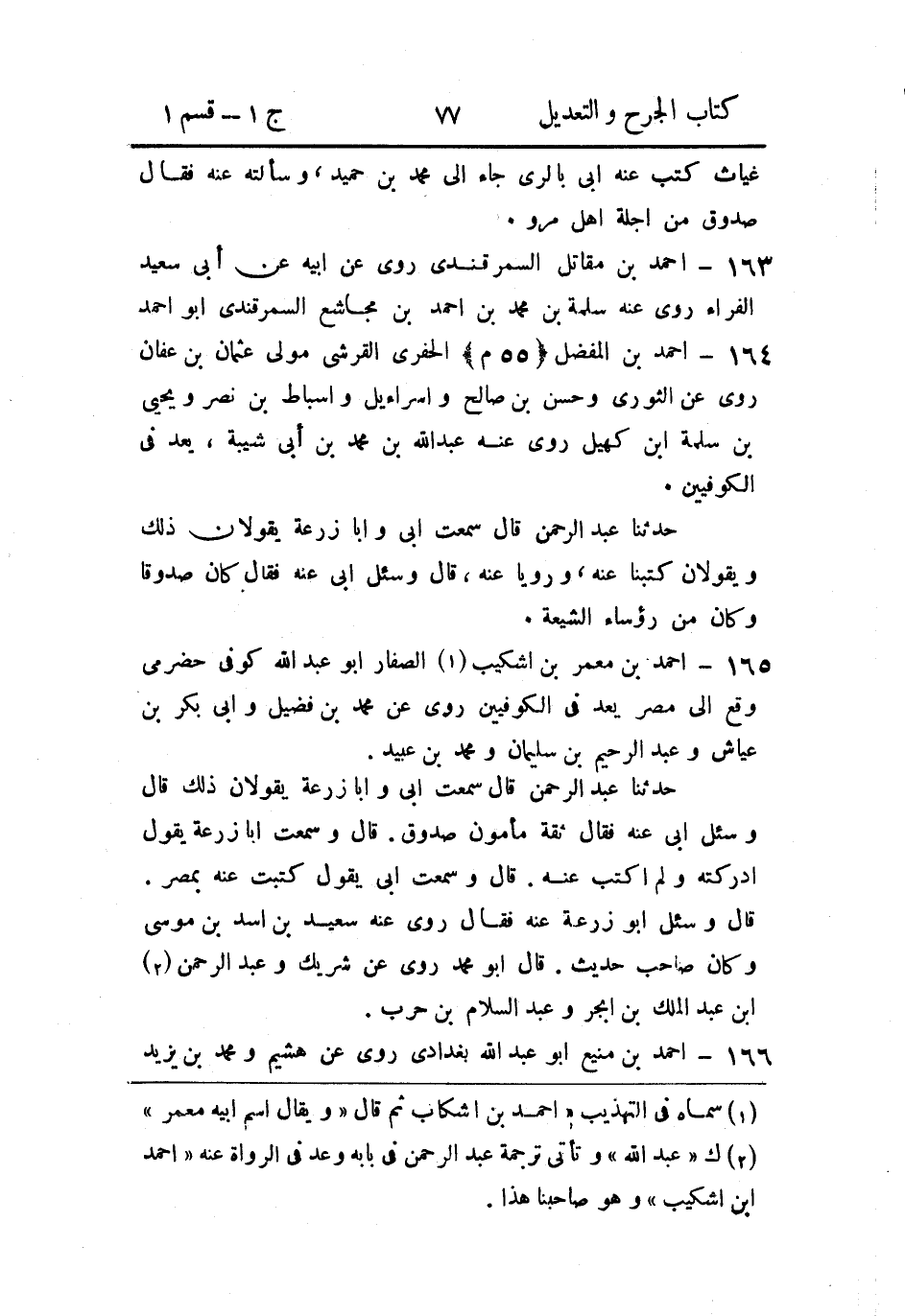 165- أَحمد بن معمر بن أشكيب الصفار، أَبو عَبد الله كوفي حضرمي، وقع إلى مصر.