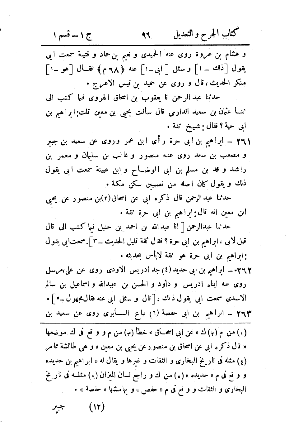 حَدثنا عَبد الرَّحمن، أَخبَرنا عَبد الله بن أَحمد بن حَنبل، فيما كَتَبَ إلَيَّ، قال: قيل لأَبي: إِبراهيم بن أَبي حرة، فَقال: ثِقةٌ، قليل الحديث.