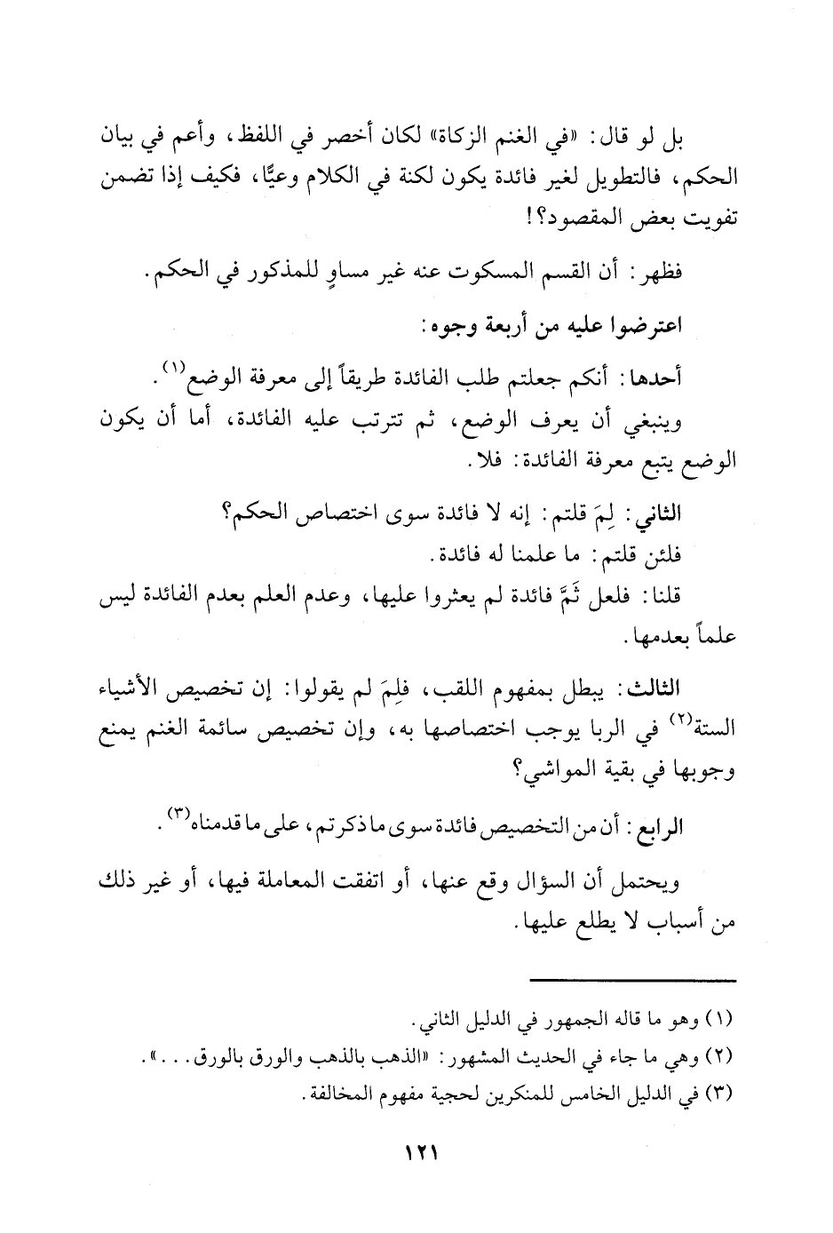 3 في الدليل الخامس للمنكرين لحجية مفهوم المخالفة.