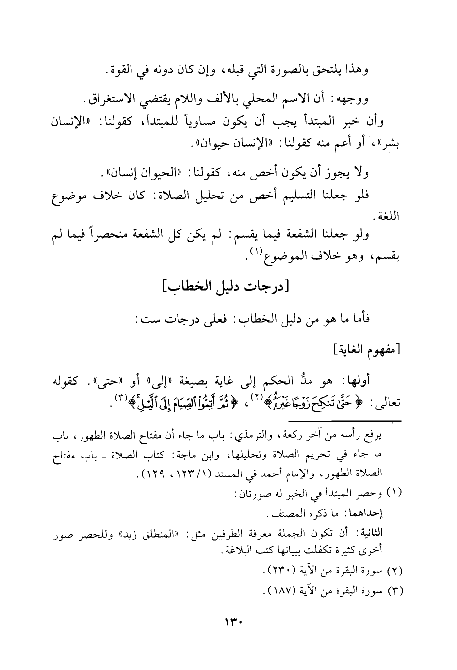 أولها: هو مد الحكم إلى غاية بصيغة "إلى" أو "حتى". كقوله تعالى: {حَتَّى تَنْكِحَ زَوْجًا غَيْرَهُ} 2، {ثُمَّ أَتِمُّوا الصِّيَامَ إِلَى اللَّيْلِ} 3.