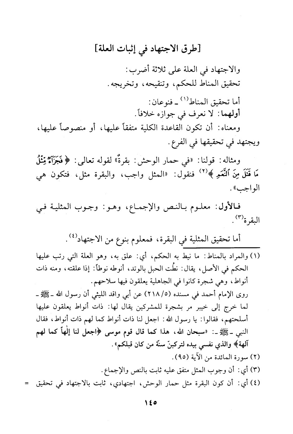 ومثاله: قولنا: "في حمار الوحش: بقرةٌ" لقوله تعالى: {فَجَزَاءٌ مِثْلُ مَا قَتَلَ مِنَ النَّعَمِ} 2 فنقول: "المثل واجب، والبقرة مثل، فتكون هي الواجب".