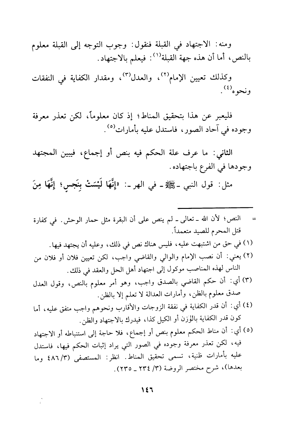5 أي: أن مناط الحكم معلوم بنص أو إجماع، فلا حاجة على استنباطه أو الاجتهاد فيه لكن تعذر معرفة وجوده في الصور التي يراد إثبات الحكم فيها، فاستدل عليه بأمارات ظنية، تسمى تحقيق المناط. انظر: المستصفى "3/ 486 وما بعدها"، شرح مختصر الروضة "3/ 234-235".