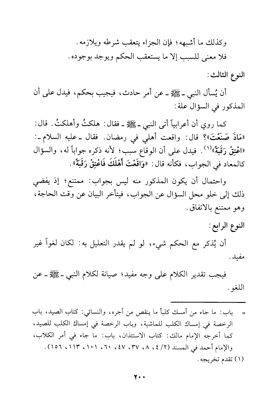 أن يسأل النبي -صَلّى الله عَلَيْهِ وَسَلّم- عن أمر حادث، فيجيب بحكم، فيدل على أن المذكور في السؤال علة.