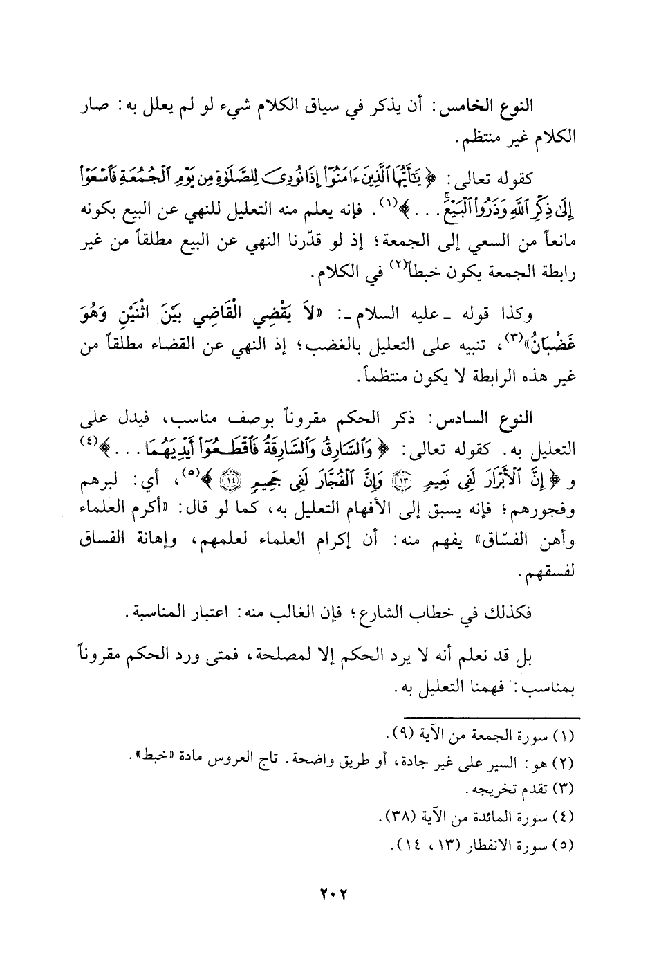 النوع الخامس: أن يذكر في سياق الكلام شيء لو لم يعلل به: صار الكلام غير منتظم