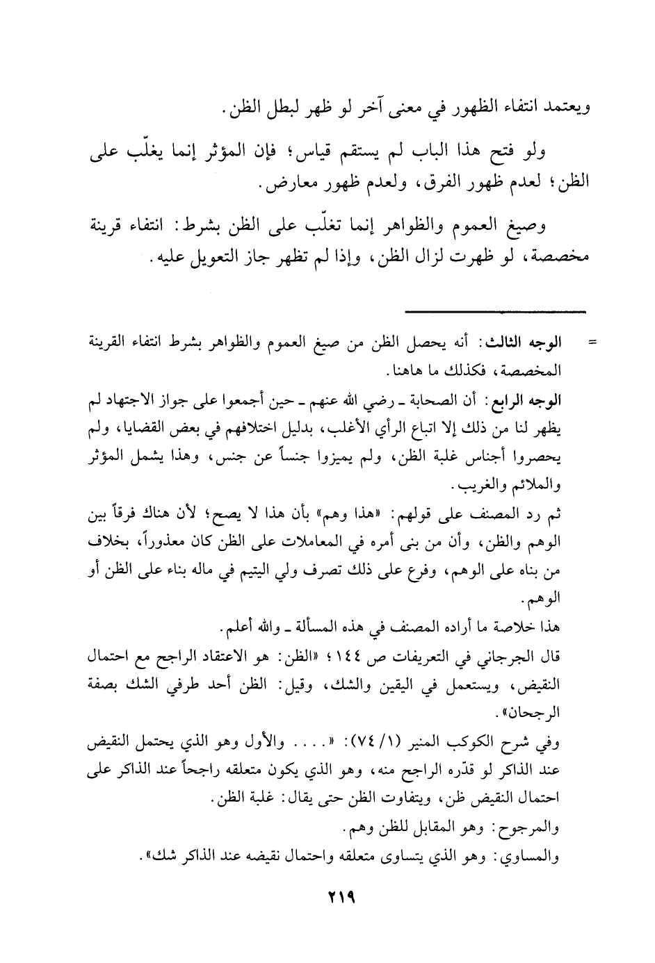 وفي شرح الكوكب المنير "1/ 74": ".... والأول وهو الذي يحتمل النقيض عند الذاكر لو قدّره الراجح منه، وهو الذي يكون متعلقه راجحًا عند الذاكر على احتمال النقيض ظن، ويتفاوت الظن حتى يقال: غلبة الظن.