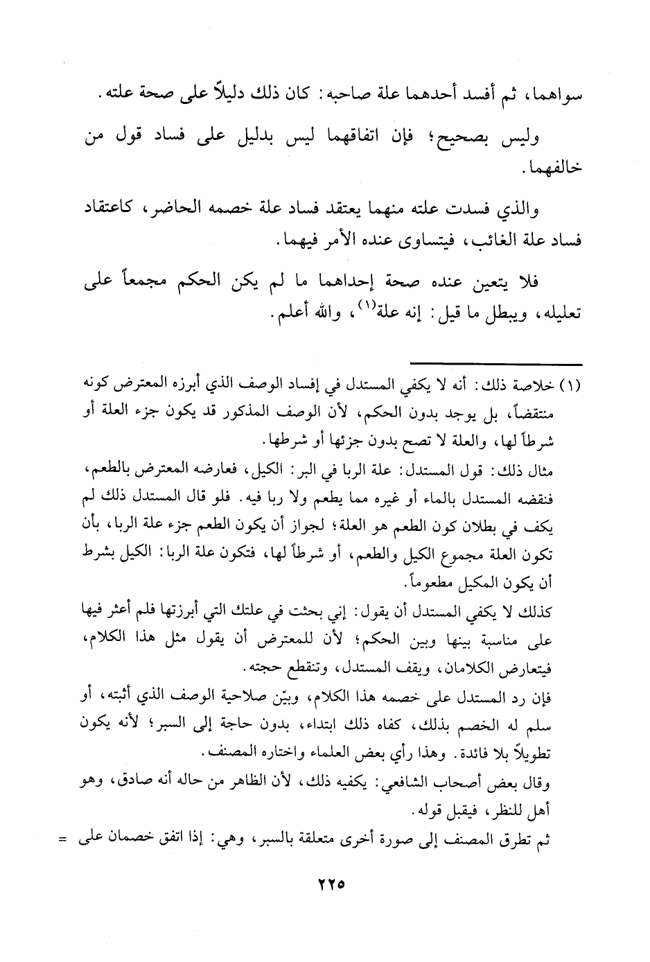 1 خلاصة ذلك: أنه لا يكفي المستدل في إفساد الوصف الذي أبرزه المعترض كونه منتقضًا، بل يوجد بدون الحكم؛ لأن الوصف المذكور قد يكون جزء العلة أو شرطًا لها، والعلة لا تصح بدون جزئها أو شرطها.