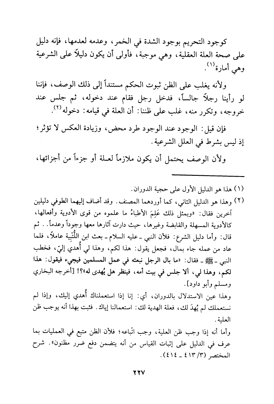 2 وهذا هو الدليل الثاني، كما أوردهما المصنف. وقد أضاف إليهما الطوفي دليلين آخرين فقال: "وبمثل ذلك عَلِمَ الأطباءُ ما علموه من قوى الأدوية وأفعالها، كالأدوية المسهلة والقابضة وغيرها، حيث دارت آثارها معها وجودًا وعدمًا ... ثم قال: وأما دليل الشرع فلأن النبي -عليه السلام- بعث ابن اللتبية عاملًا، فلما عاد من عمله جاء بمال، فجعل يقول: هذا لكم، وهذا لي أُهدى إلي، فخطب النبي -صَلّى الله عَلَيْهِ وَسَلّم- فقال: "ما بال الرجل نبعثه في عمل المسلمين فيجيء فيقول: هذا لكم، وهذا لي، ألا جلس في بيت أمه، فينظر هل يهدى له؟! " [أخرجه البخاري ومسلم وأبو داود] .