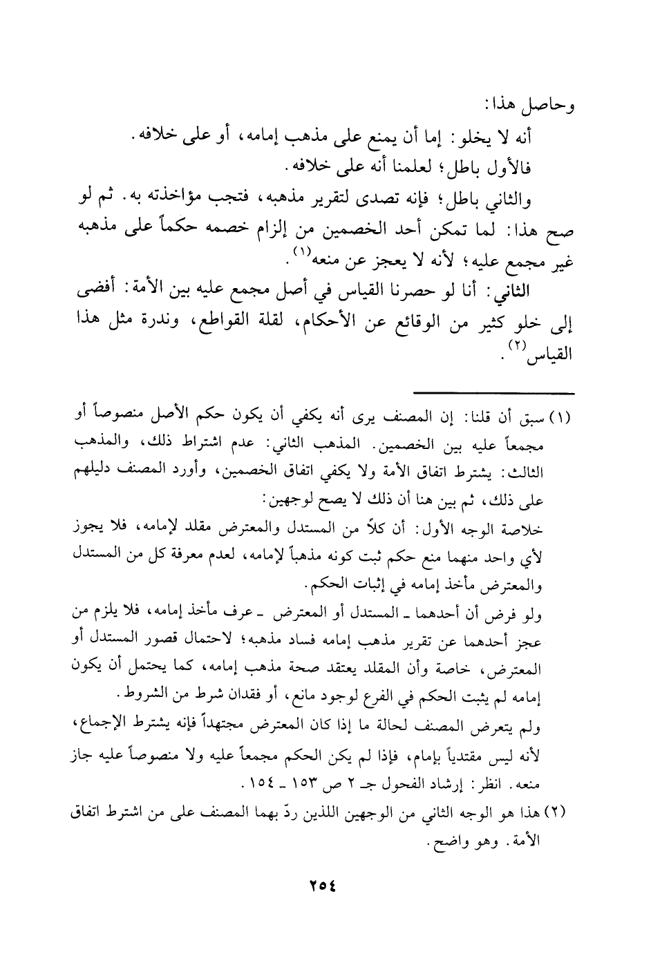 1 سبق أن قلنا: إن المصنف يرى أنه يكفي أن يكون حكم الأصل منصوصًا أو مجمعًا عليه بين الخصمين. المذهب الثاني: عدم اشتراط ذلك، والمذهب الثالث: يشترط اتفاق الأمة ولا يكفي اتفاق الخصمين وأورد المصنف دليلهم على ذلك، ثم بين هنا أن ذلك لا يصح لوجهين: