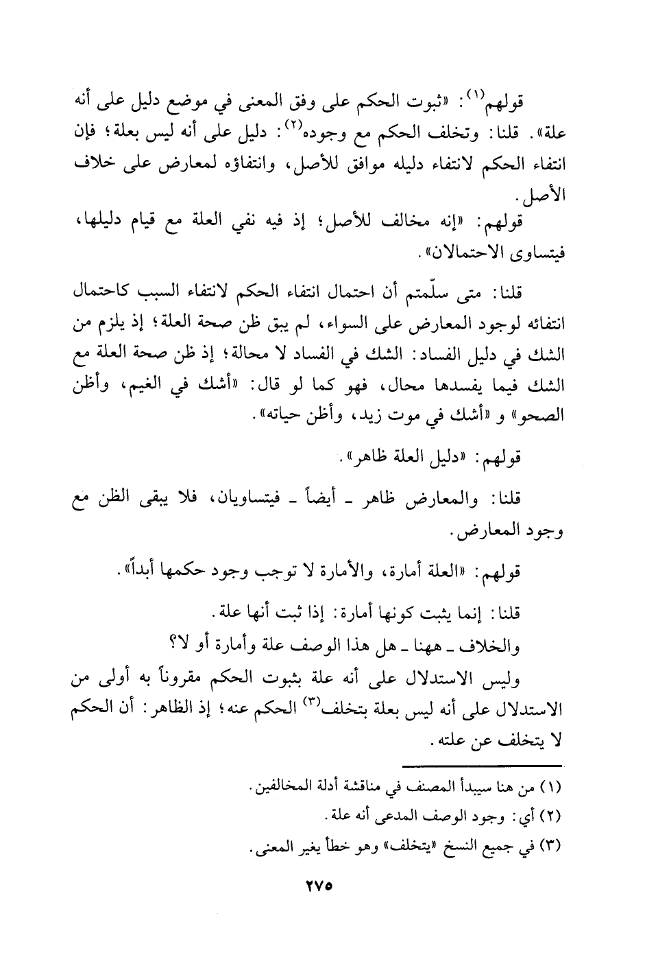 وليس الاستدلال على أنه علة بثبوت الحكم مقرونًا به أولى من الاستدلال على أنه ليس بعلة بتخلف3 الحكم عنه، إذ الظاهر: أن الحكم لا يتخلف عن علته.