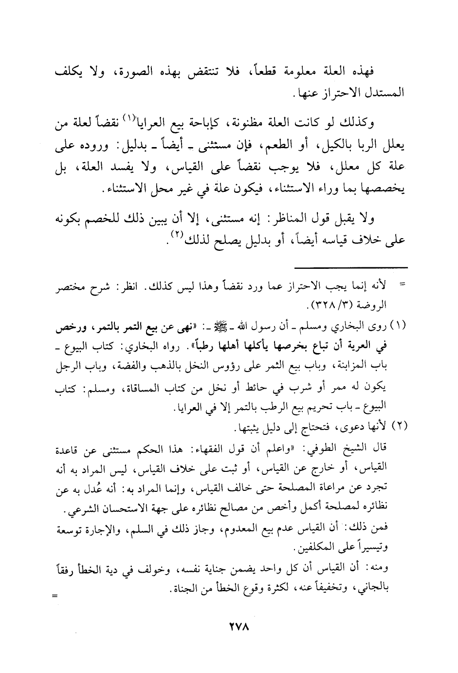 قال الشيخ الطوفي: "واعلم أن قول الفقهاء: هذا الحكم مستثنى عن قاعدة القياس، أو خارج عن القياس، أو ثبت على خلاف القياس، ليس المراد به بأنه تجرد عن مراعاة المصلحة حتى خالف القياس، وإنما المراد به: أنه عدل به عن نظائره لمصلحة أكمل وأخص من مصالح نظائره على جهة الاستحسان الشرعي. فمن ذلك: أن القياس عدم بيع المعدوم، وجاز ذلك في السلم، والإجارة توسعة وتيسيرًا على المكلفين.
