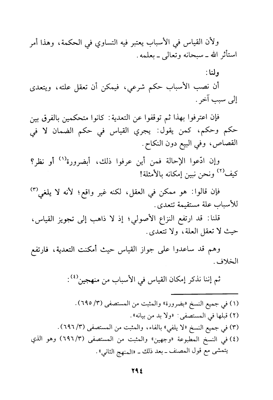 ثم إننا نذكر إمكان القياس في الأسباب من منهجين4.