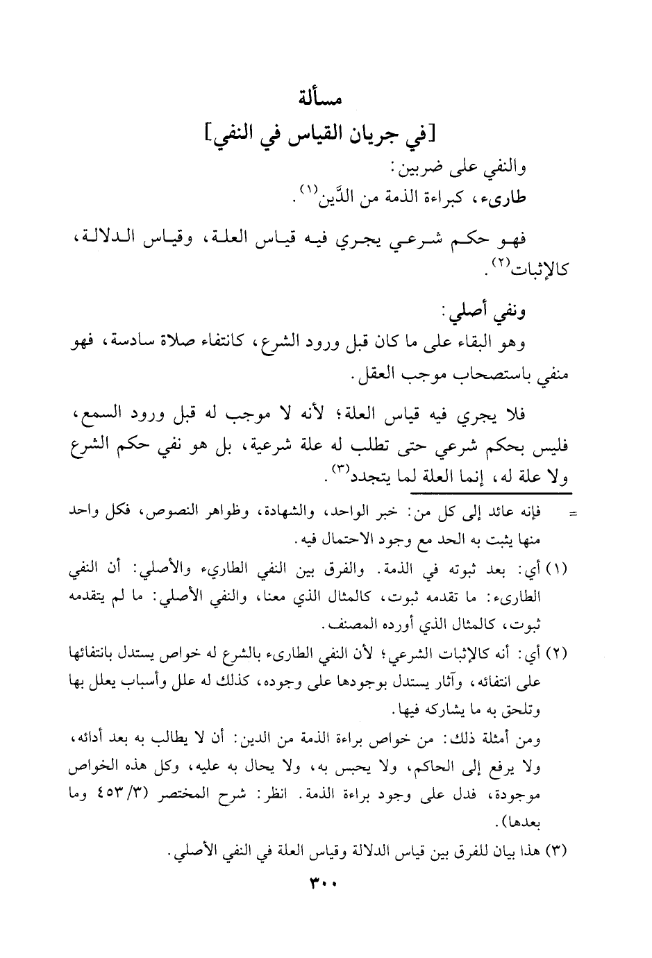1 أي: بعد ثبوته في الذمة. والفرق بين النفي الطارئ والأصلي: أن النفي الطارئ: ما تقدمه ثبوت، كالمثال الذي معنا، والنفي الأصلي: ما لم يتقدمه ثبوت، كالمثال الذي أورده المصنف.