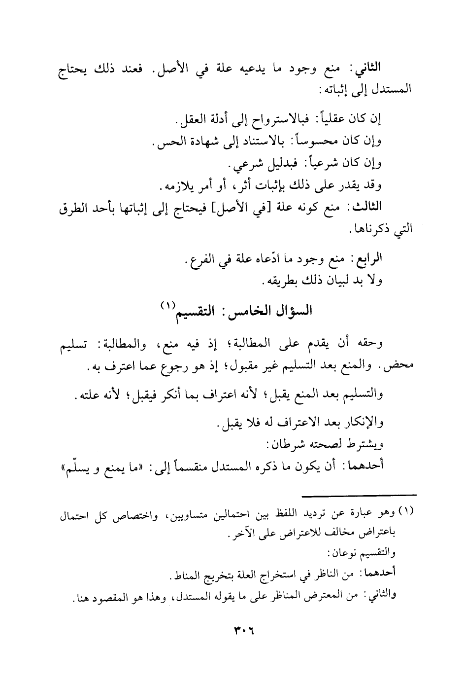أحدهما: أن يكون ما ذكره المستدل منقسمًا إلى: "ما يمنع ويسلّم".