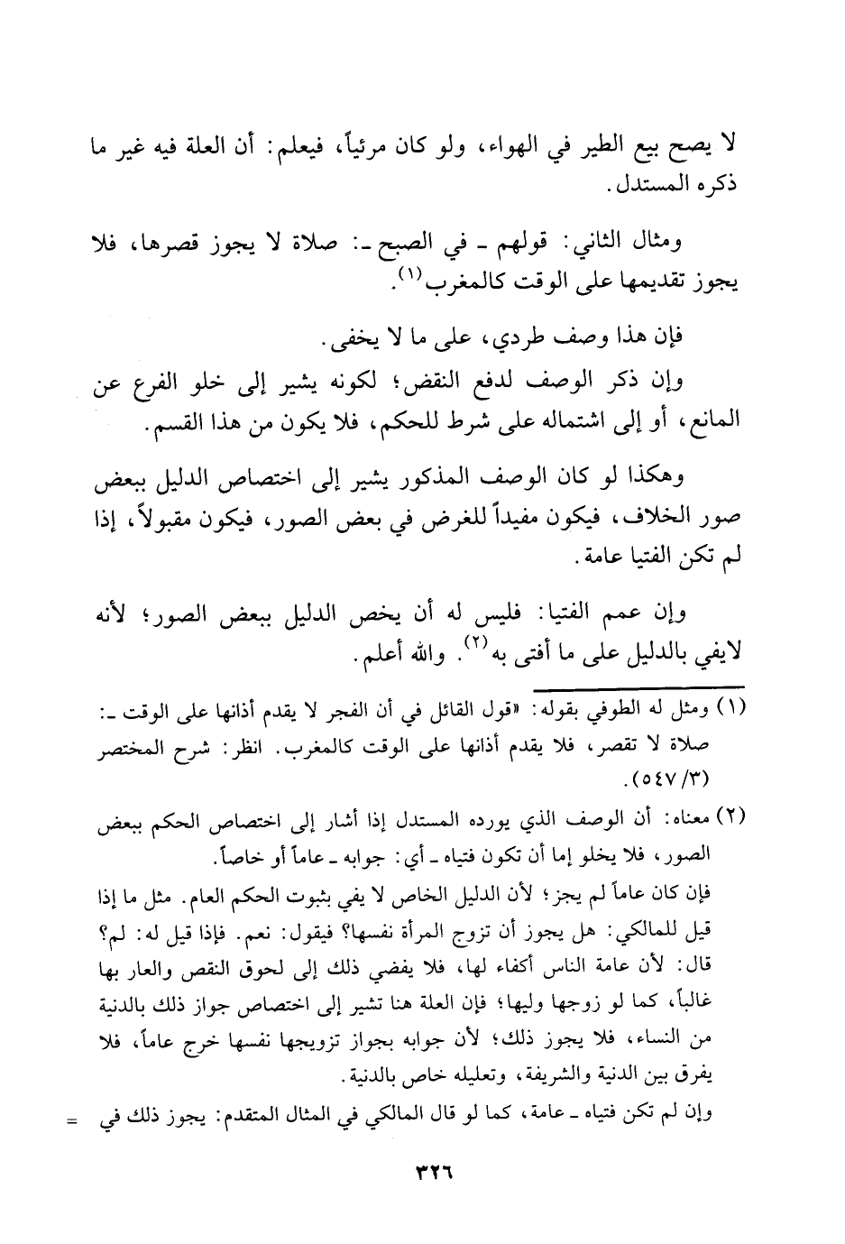ومثال الثاني: قولهم، في الصبح: صلاة لا يجوز قصرها، فلا يجوز تقديمها على الوقت كالمغرب1.