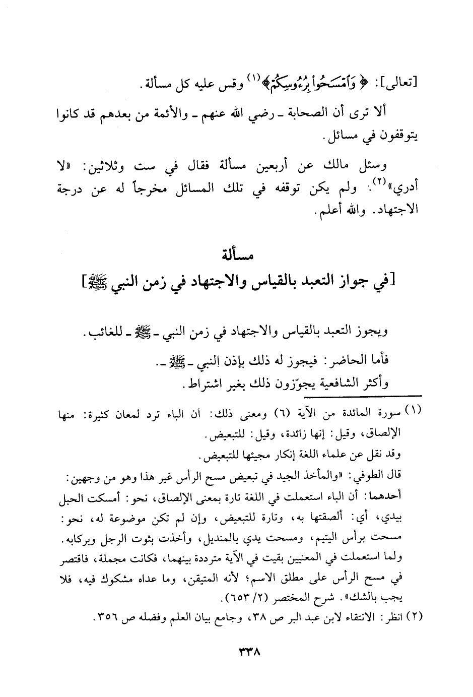 -تعالى: {وَامْسَحُوا بِرُؤُوسِكُمْ} وقس عليه كل مسألة.