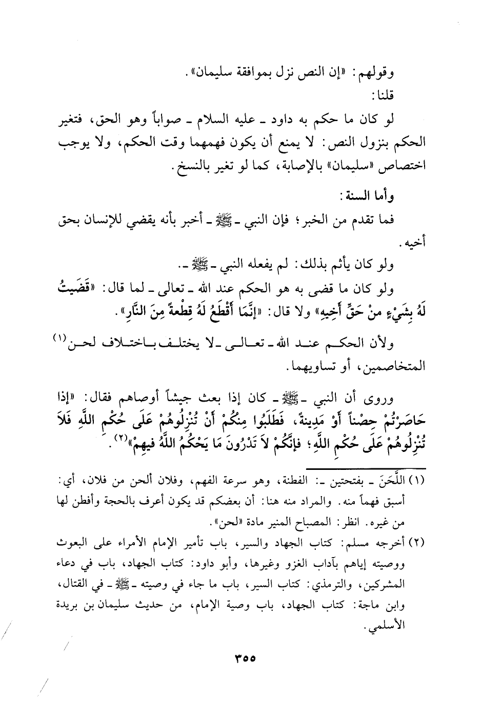 لو كان ما حكم به داود – عليه السلام- صوابًا وهو الحق، فتغير الحكم بنزول النص: لا يمنع أن يكون فهمهما وقت الحكم، ولا يوجب اختصاص "سليمان" بالإصابة، كما لو تغير بالنسخ.