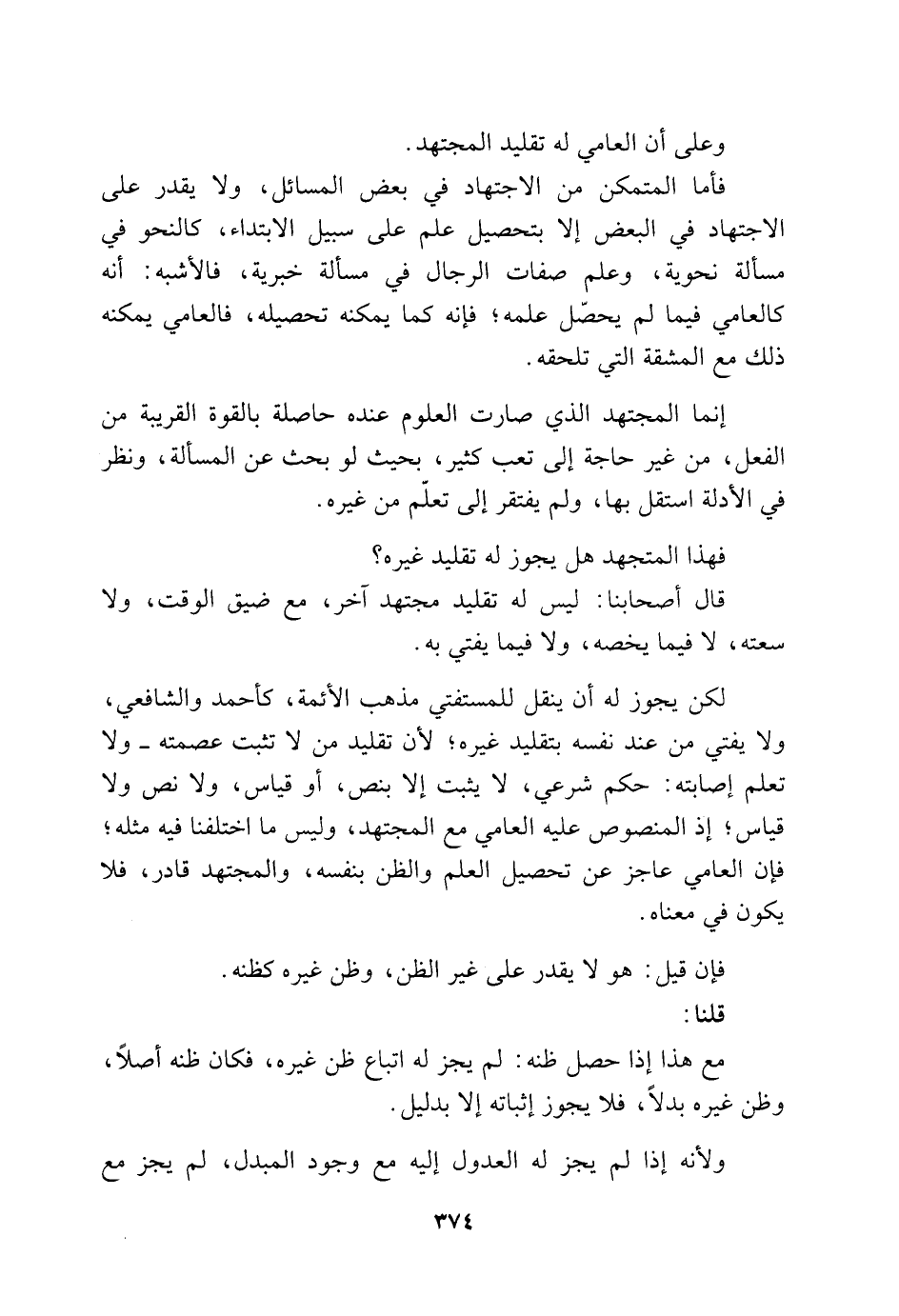 فأما المتمكن من الاجتهاد في بعض المسائل، ولا يقدر على الاجتهاد في البعض إلا بتحصيل علم على سبيل الابتداء، كالنحو في مسألة نحوية، وعلم صفات الرجال في مسألة خبرية، فالأشبه: أنه كالعامّي فيما لم يُحصّل علمُه؛ فإنه كما يمكنه تحصيله، فالعامّي يمكنه ذلك مع المشقة التي تلحقه.