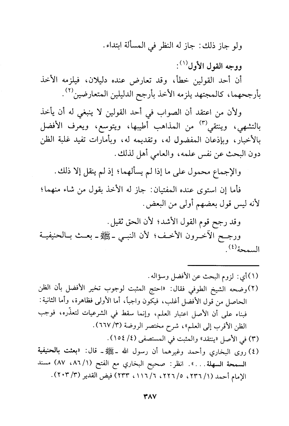 ورجح الآخرون الأخف؛ لأن النبي -صَلَّى اللَّهُ عَلَيْهِ وَسَلَّم-بعث بالحنيفية السمحة4.