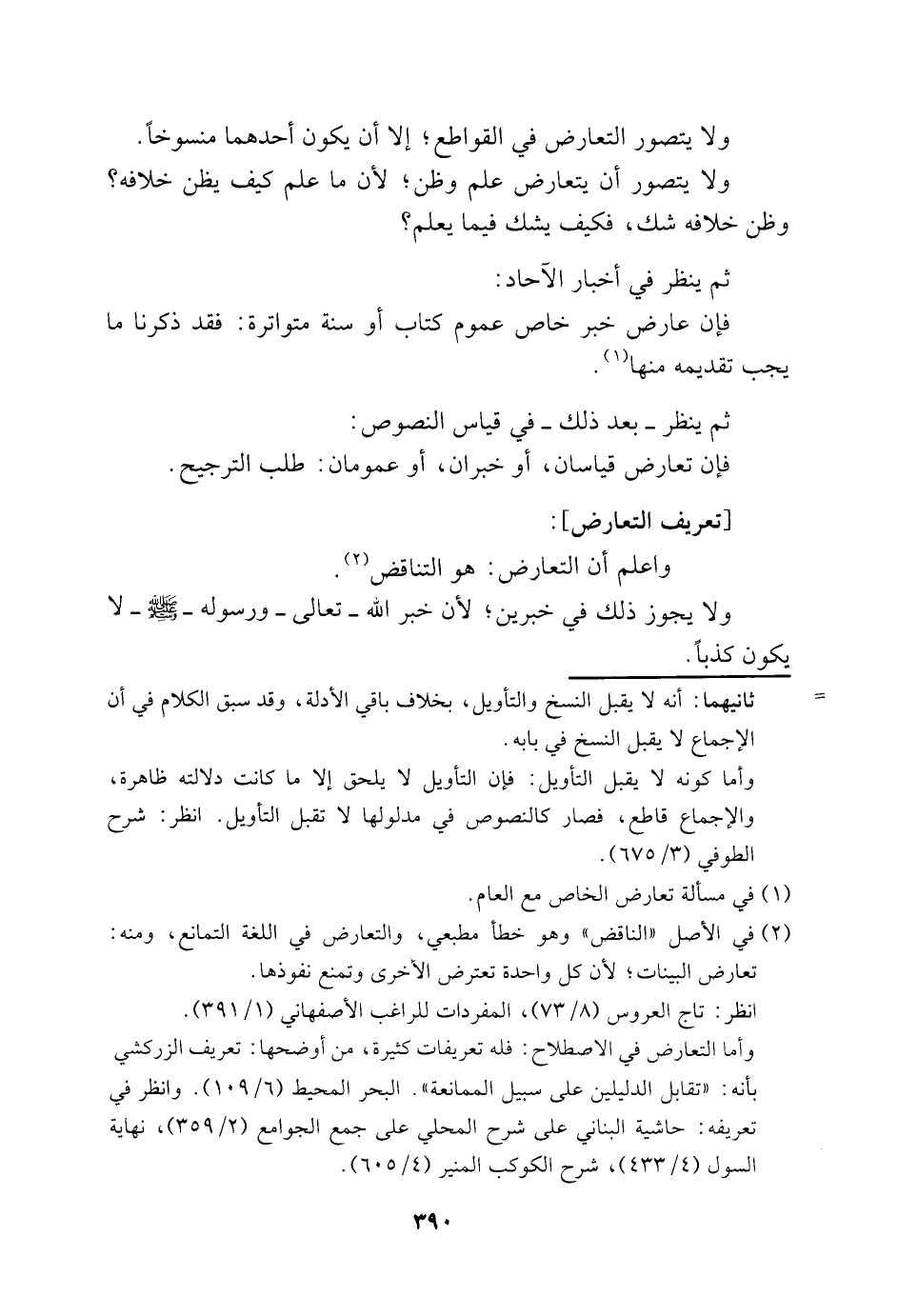 1 في الأصل: "الناقض" وهو خطأ مطبعي، والتعارض في اللغة التمانع، ومنه: تعارض البينات؛ لأن كل واحدة تعترض الأخرى وتمنع نفوذها.